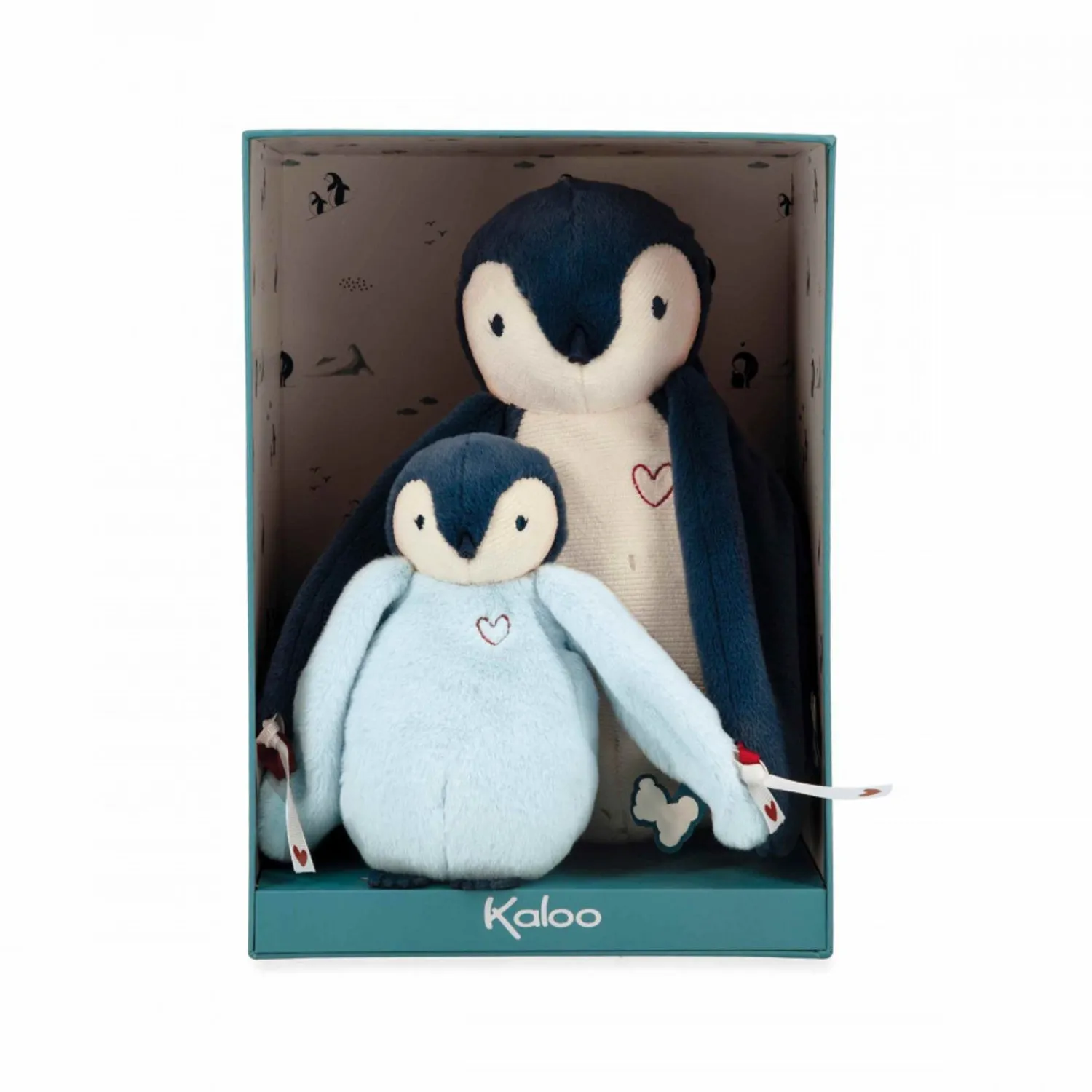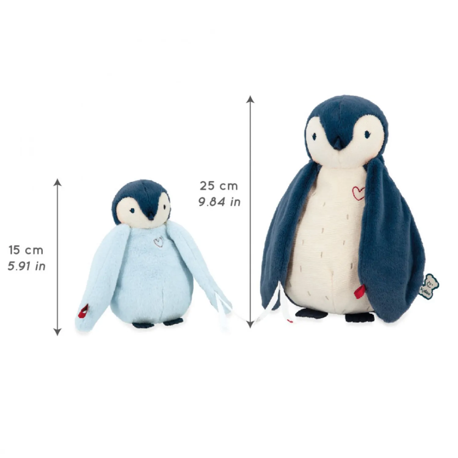 Double The Fun And Cuddles With This Set Of Two Babies’ Penguin Plushes! These Penguin Soft Toys – Suitable For 0 Months And Up – Have Been Designed To Comfort And Reassure Little Ones When Separated From Loved Ones. These Soft And Fluffy Blue Stuffed Animals Represent A Parent And Their Baby To Reinforce The Special Bond That Unites Them. The Flippers Of The Bigger Penguin Are Nice And Cuddly, And Perfectly Wrap Around The Baby Penguin To Keep Them Close. The Small Heart-Decorated Ribbons At The End Of The Wings, Allow The Soft Toys To Be Tied Together; They Symbolise Protection And The Bond Between A Parent And Child. The Ideal Newborn Gift: This Two-Piece Kaloo Plush Set Will Help Reassure Baby When They Are Suffering From Separation Anxiety. The Pretty Hearts And Big Hugs Help Reinforce The Concept That The Unique Bond That Ties Little Ones To Their Parents Is Not Weakened Whenever The Two Are Separated. To Promote Cuddles And Stimulate Baby’S Senses, These Penguin Plushes Are Made From Different Materials (Corduroy And Synthetic Fur), And Feature Touch-Distinctive Embroidered Detail And Tags! There’S Nothing Better Than Stroking Their Soft Fur And Cuddling Into Their Plump Bellies. The Small Penguin Measures 15 Cm And The Bigger One, 25 Cm. They Are Both Stuffed With Recycled Polyester. This Set Of Baby Soft Toys Comes In A Pretty Matching Box And Is A Great Idea For A Baby Shower Or Any Other Occasion: The Gift Box Can Be Personalised Via The Insert Provided For This Purpose, And Can Be Reused To Collect Baby’S First Keepsakes. These Blue Penguin Cuddly Toys Are Part Of Our Complice Range: A Collection Of Soft Toys And Comforters That Express Love And Comfort, To Illustrate The Bond Shared Between Baby And Their Parents, And Help Them Deal With These Very First Separations.