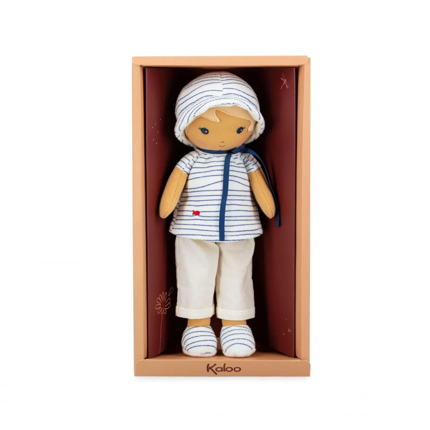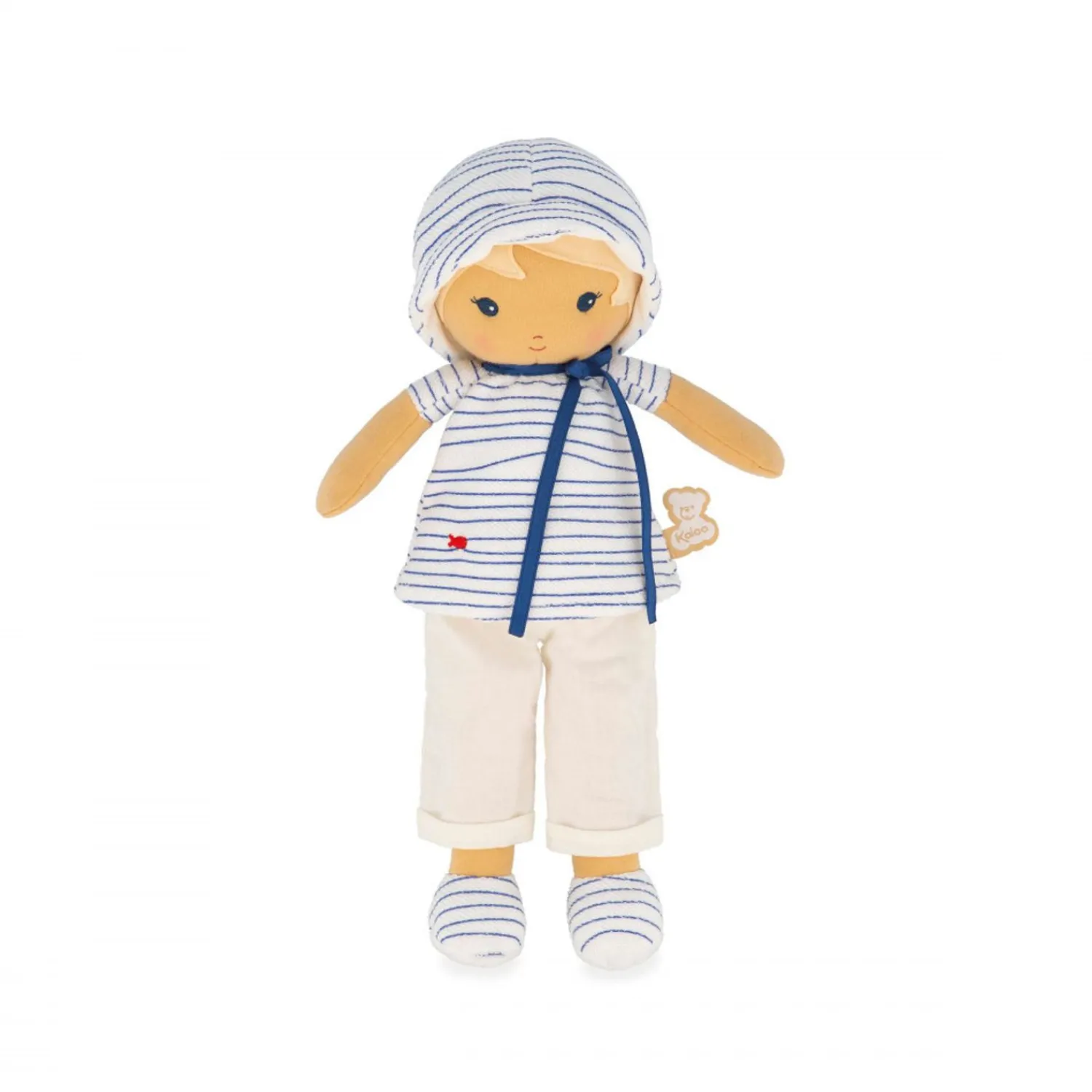 Eli Is A Fabric Doll Dressed As A Little Sailor, Who Invites You To Go On An Adventure Near The Water. The Doll Measures 12,48 Inches And Is Suitable For Babies From Birth. Eli Loves Touching, Climbing And Jumping In The Sea, As Evidenced By Her Light, Casual Outfit. This Doll Wears A Sailor Top With Contrasting Stripes That Will Be Easy For Young Children To Spot. Its Delicate Fish Embroidery Is A Reminder Of The Sea And The Ocean, The Element Eli Prefers To Play In. Eli’S Baggy Trousers Are Easy For Youngsters’ Clumsy Hands To Grasp. Thanks To Its Elegant Hat, Eli Is Not Afraid Of Sunburns. Around Its Neck Is A Pretty Ribbon On Which You Can Write Baby’S Name. The Size Of This Baby Doll Makes It Ideal For Cuddling, And Little Hands Can Easily Grab The Doll By The Arms Or Legs. Eli Doll Is Made From Polyester And Cotton. It Is Machine Washable At 30° And Comes In A Beautiful Gift Box, For A Tender Baby Gift.