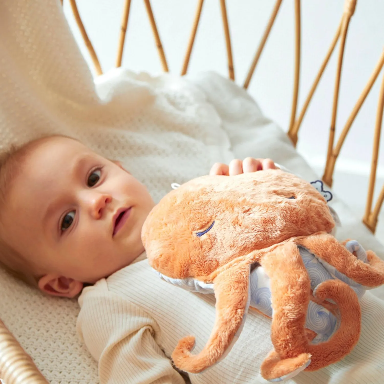 This Plush Octopus-Shaped Natural Heatpad Is The Ideal Soft Toy For Relieving Baby’S Aches And Pains Right From Birth. It Has A Removable Cover And Contains A Removable Pouch. The Pocket Filled With Clay Balls And Lavender Flowers Is To Be Put In The Microwave Or Freezer For A Hot Or Cold Effect. Access To The Pouch Is Secured By A Velcro System To Ensure Safe Use. Made Of Soft Fur, It Will Be Able To Soothe And Relax Baby. The Back Is Decorated With A ’Dance Of The Waves’ Print Embellished With Fish Embroidery That Recall The Calm Of The Deep Sea And The Wave Of Softness And Well-Being Brought By The Well-Being Plush. Its Generous Size Is Ideal For Warming Up Your Child In Bed And Soothing Him. Without A Pocket, The Octopus Plush Will Wrap Baby In Comfort With Its Soft Tentacles To Become His Favourite Companion For Cuddling. Without A Pocket, The Octopus Plush Will Wrap Baby In Comfort With Its Soft Tentacles To Become His Favourite Companion For Cuddling. The Heatpad Offers Several Benefit Including Temporary Relief Of Pain.The Lavender Helps Babies Fall Asleep Thanks To Its Calming And Soothing Properties. Please Remove The Pouch Prior To Machine Washing. Instructions Included Inside The Plush Toy. Size: 29 Cm X 17 Cm