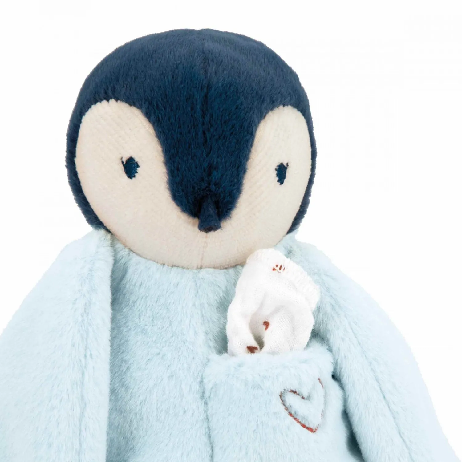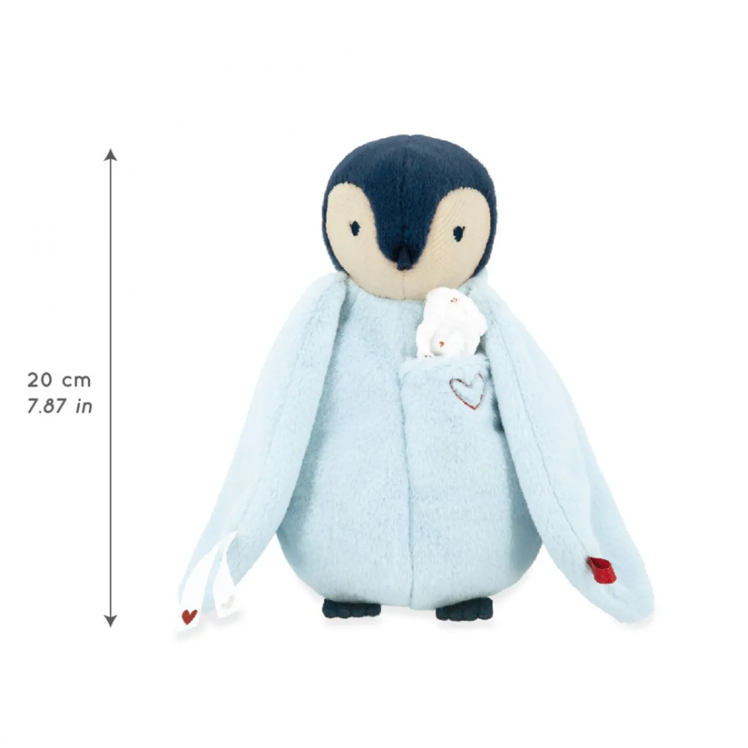 Maintain The Special Bond That Ties You With Your Baby, Thanks To This Kiss Plush! This Stuffed Penguin Has A Soft Belly And Carries A Handkerchief In Its Pocket Which Can Be Imbued With The Kisses And Scent Of Baby’S Parents For Reassurance Purposes. Little Ones Often Find It Difficult To Be Separated From Their Parents, And For This Reason, Kaloo Has Designed This Kiss Plush: The Soft-Touch And Ultra-Cuddly Penguin Boasts A Small Yet Easily Accessible Front Pocket, Inside Which A Pretty Cotton Muslin Handkerchief Can Be Stored. Scents Are Easily Absorbed By This Material, Allowing Parents To Keep The Handkerchief Close At Hand Before Slipping It Into Baby’S Soft Toy. Whenever Baby Feels Sad, The Kiss Soft Toy Will Be At Hand To Reassure Little One And Remind Them Of The Special Bond Shared With Their Parents! The Blue Stuffed Animal Is Decorated With A Pretty Embroidered Heart And Also Comes With A Heart-Adorned Ribbon: This Allows The Flippers To Be Tied Together As A Symbol Of Protection And Attachment. This Penguin Plush Measures 20 Cm And Is Made Of Both Corduroy And Synthetic Fur (Polyester). Recycled Polyester Stuffing. Both The Plush And Handkerchief Are Machine-Washable. The Product Comes In A Pretty Box With A Lid And Serves As The Perfect Newborn Gift Or A Sweet And Comforting Impulsive Purchase! The Box Boasts A Customisable Insert Underneath The Lid, And Can Also Be Reused As A Storage Box For Baby’S Bits And Bobs. This Blue Penguin Kiss Plush Is Part Of Our Complice Range: A Collection Of Soft Toys And Comforters That Express Love And Comfort, To Illustrate The Bond Shared Between Baby And Their Parents, And Help Them Deal With These Very First Separations.